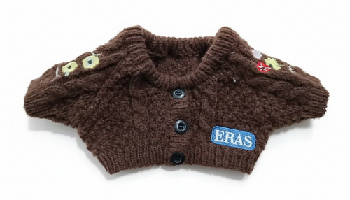 This one feels like a warm cup of tea in plush form. The cardigan knit looks so tidy and intentional — like it was made to live on a bookshelf beside your favorite memories.
