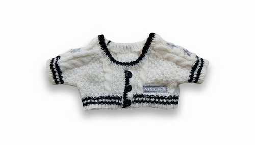 Everything about it feels intentional — the stitching, the fit of the cardigan, the softness of the fur. It feels like a tiny heirloom.
